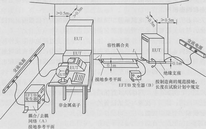 電快速瞬變脈沖群抗擾度試驗(yàn)可以分成在實(shí)驗(yàn)室進(jìn)行的試驗(yàn)和在設(shè)備最終安裝條件下對(duì)設(shè)備進(jìn)行的安裝后試驗(yàn)。優(yōu)先采用實(shí)驗(yàn)室進(jìn)行的試驗(yàn)。