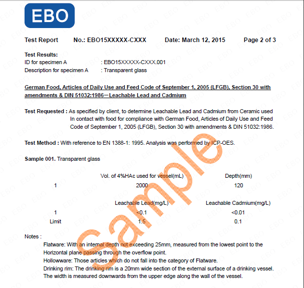 LFGB報(bào)告樣本:
