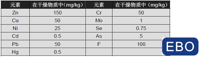 表EN 13432 對(duì)包裝材料和所有的包裝允許的最大元素含量