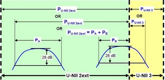 (3) 如果有一個信號跨越兩個UNII的頻帶,這時必須以被跨越的頻率做分隔,來判斷在不同UNII頻段的26dB EBW。