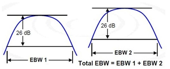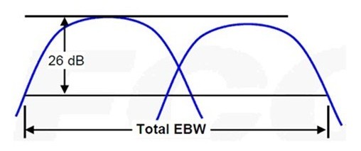 (2) 如果這兩個非相鄰信號沒有重疊在一起,那么26 dB的EBW是兩個非相鄰信號各個26dB EBW之和。