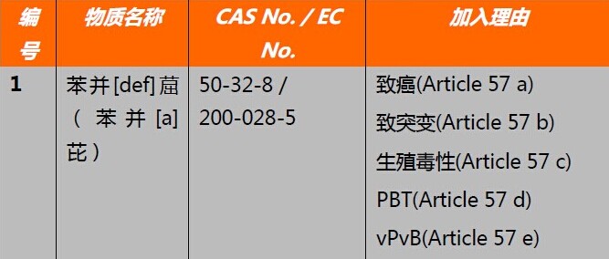 赫爾辛基2016年6月20日,歐盟化學(xué)品管理局(ECHA)公布了第15批高關(guān)注物質(zhì)(SVHC)候選清單,將1項(xiàng)物質(zhì)苯并[a]芘加入到清單中。截止至目前,SVHC候選清單一共有169項(xiàng)物質(zhì)。