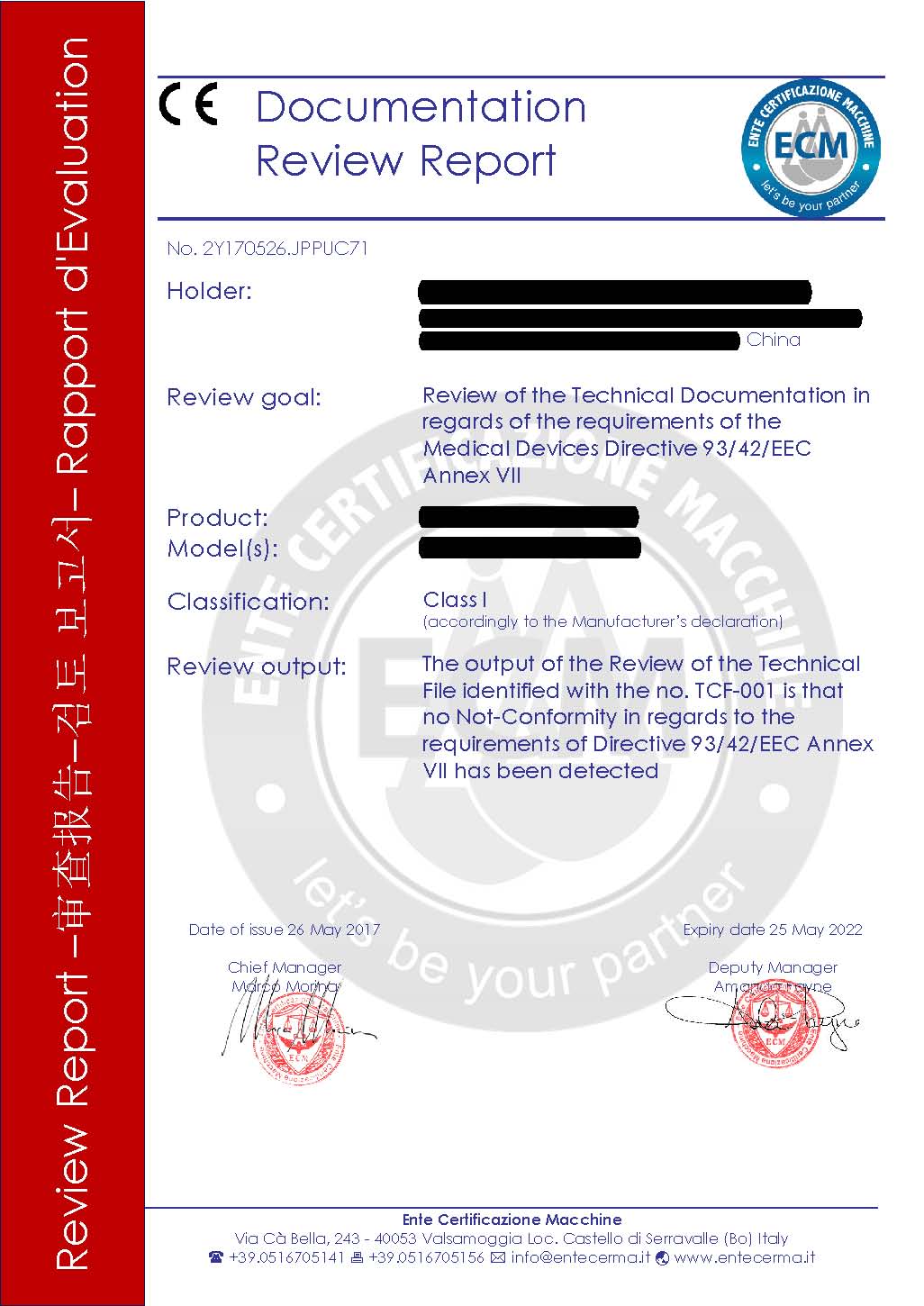 醫(yī)療器械CE認(rèn)證樣本: