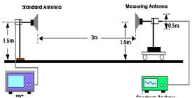 測(cè)試設(shè)備:功率計(jì), 接收天線,信號(hào)源,發(fā)射天線,電波暗室